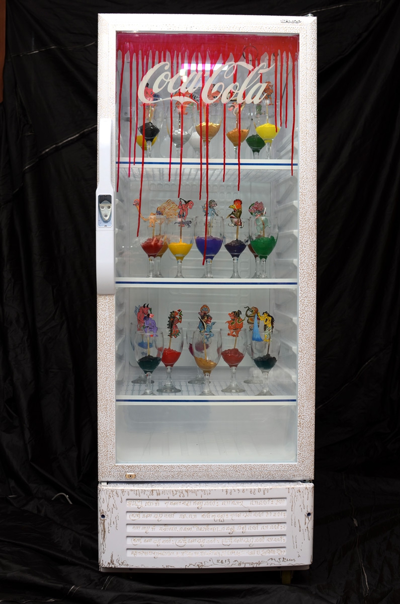 Papier-mâché and wood. The backside contains a drawer with hand-written poetry