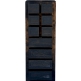 Burned wood, polish, engraved glass, soil, sand, water, fan, LED lamp