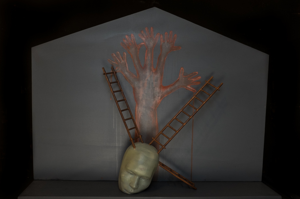 Dimension variable - occupying approx. 200 cm wide of space (highest piece is 35 cm)