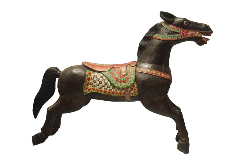 Nasirun Nasirun’s technical mastery of brushwork and impasto, his brilliant colour palette, and his beautifully wrought detail give his works a sophistication that acts as a wonderful counterpoint to their wild inventiveness. In his monumental oil painting Mudah- Mudahan Allah Setuju Enyong Modern (2010), which translates as ‘I Hope Allah Doesn’t Mind If I’m Modern’, Nasirun uses his own silhouette to create a portrait of a winged angel (wearing a Muslim hat) painted in a field of pure white colour with a delicately textured ground. The figure is set against a dark background punctuated with a shower of tiny, fantastical trees and plants in jewel-like colours. When asked about the significance of the imagery, Nasirun said that the ‘the angel represents the human’s fundamentally sacred nature’ but our behaviour determines ‘whether our heart is black or red.’ And he warns that as ‘guardians of nature’ we are failing in our mission: the shower of plants, he said, can either be read as ‘meteoric rain’ or as the ‘plants, floating.’ Nasirun’s carousel horses were salvaged from an old junkshop and repainted (or ‘re-magicked’ ) into life by the artist, while his brilliantly painted wooden panels use as their central motifs another kind of found object, the royal kraton stamp of approval from the old metal boxes used for consumer products in the past. For Nasirun, the sacred and the joyful can be found everywhere, if one only has the eyes to see. Has been with Sin Sin Fine Art since 2009. EXHIBITION HISTORY • Full CV in PDF |